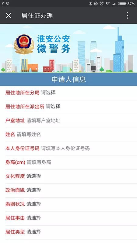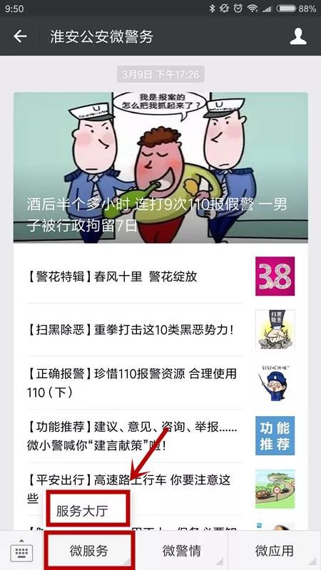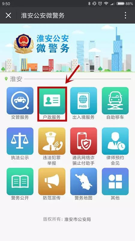 点击进入淮安公安微警务【服务大厅】→【户政服务】