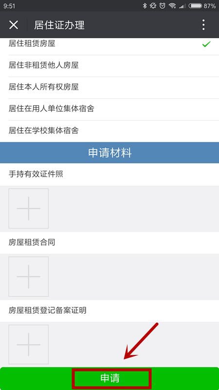 点击【居住证办理】→【我要申请】