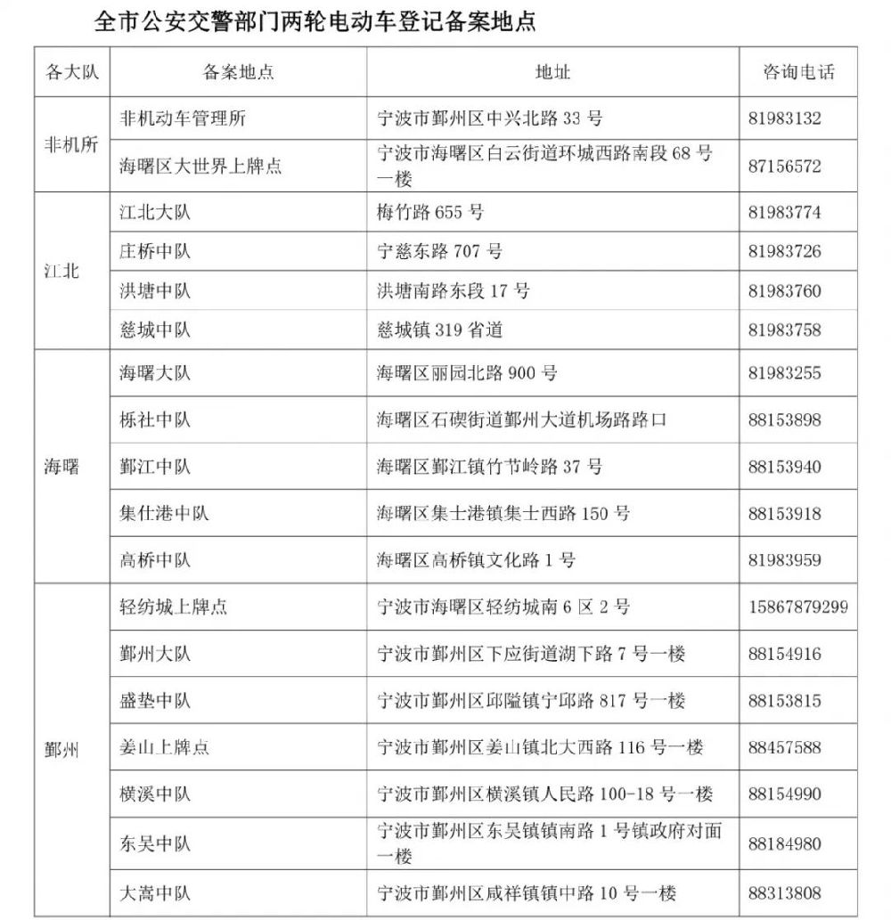 宁波电动车备案地点在哪