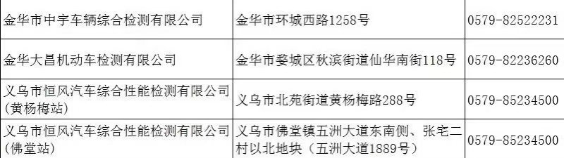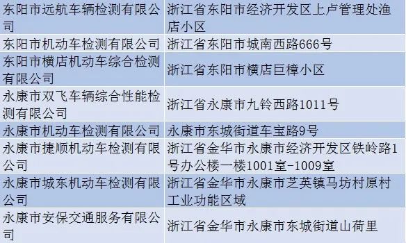 金华=车辆年检“一件事”联办第一批试点检测站名单