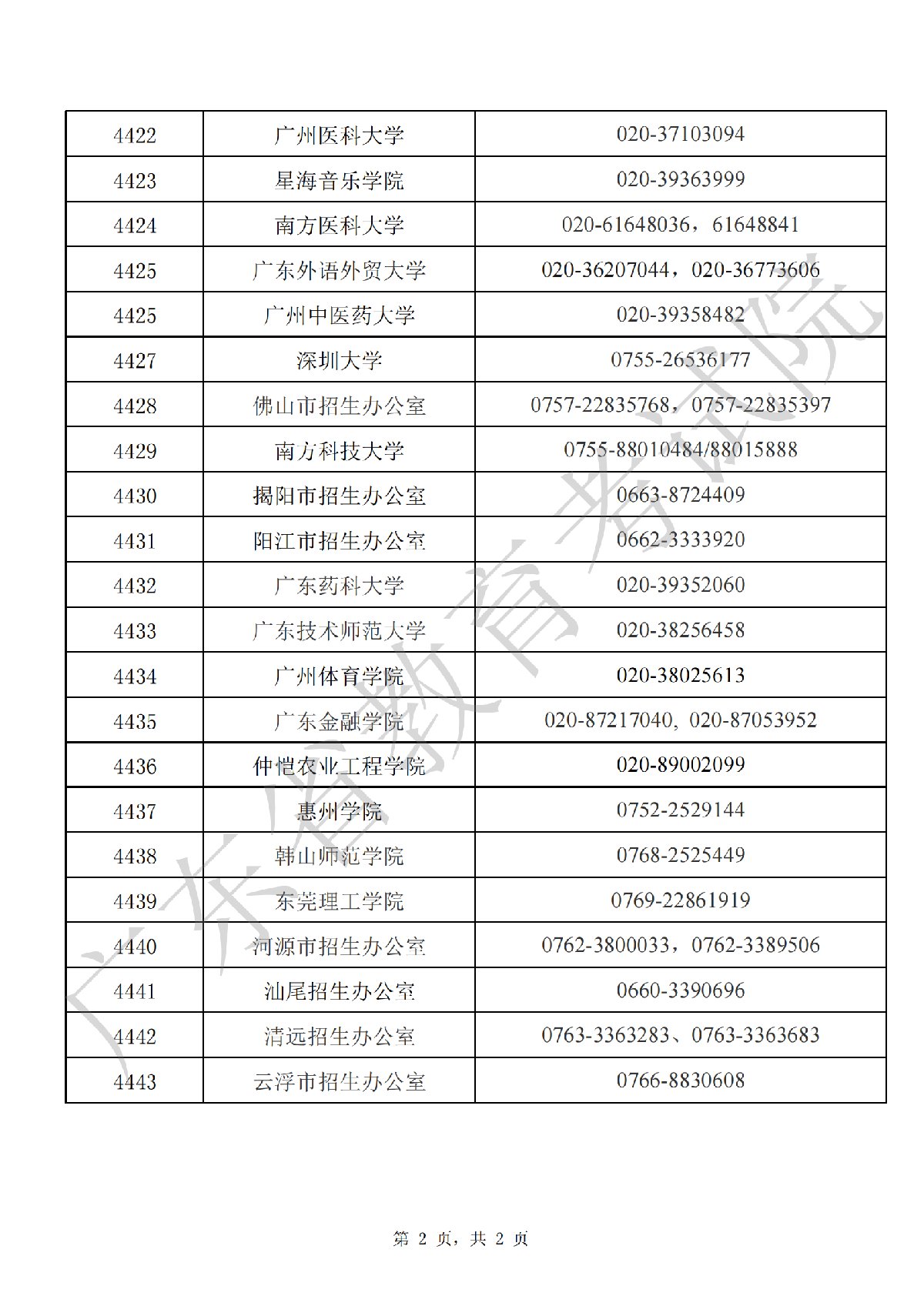 广州、东莞、江门、湛江、茂名、肇庆、汕头、梅州、中山、韶关、深圳、珠海、佛山、揭阳、阳江、河源、汕尾、清远、云浮市招生办公室(考试中心)、中山大学、华南理工大学、华南师范大学、广东工业大学、广州美术学院、暨南大学、广东财经大学、华南农业大学、广州大学、广州医科大学、星海音乐学院、南方医科大学、广东外语外贸大学、广州中医药大学、深圳大学、南方科技大学、广东药科大学、广东技术师范大学、广州体育学院、广东金融学院、仲恺农业工程学院、惠州学院、韩山师范学院、东莞理工学院。