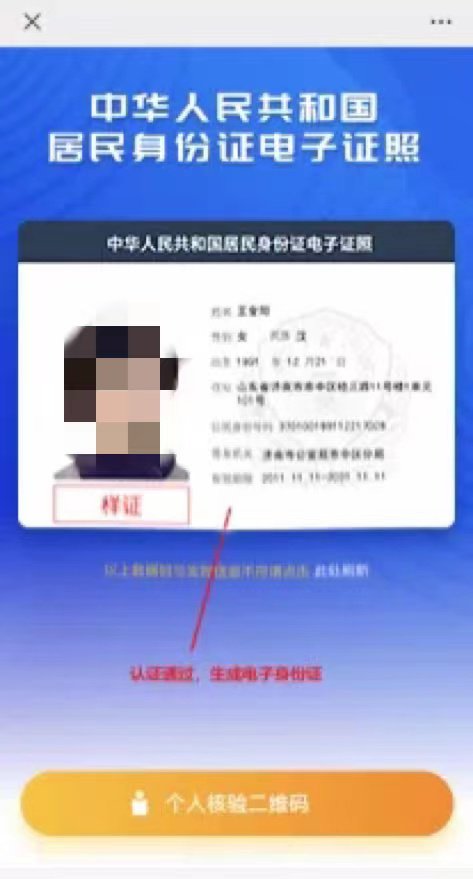 第五步:身份认证通过后,显示个人身份证卡片信息