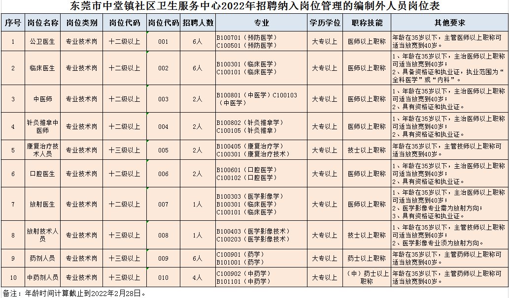 东莞市中堂镇社区卫生服务中心是中堂镇人民政府下属公益一类事业单位。现根据《东莞市机关事业单位招聘聘用人员管理办法》《东莞市社区卫生服务机构工作人员岗位聘用管理实施意见(试行)》的规定,决定招聘32名纳入岗位管理的编制外人员。