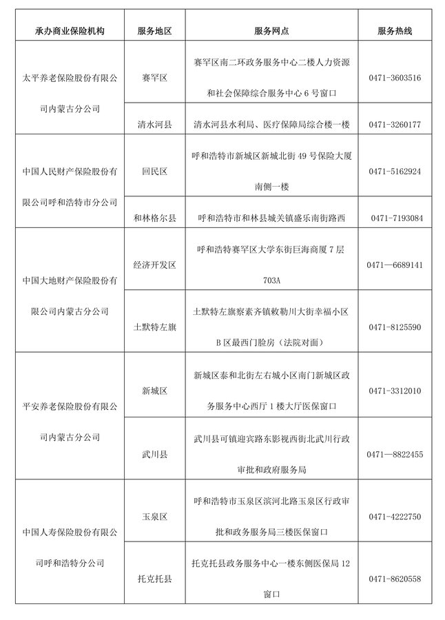 申请人可向下表中承办商业保险机构服务网点受理窗口提出书面申请。