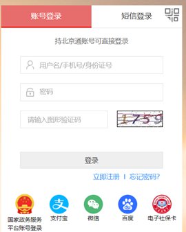 第四步:用北京通账号、手机号或者第三方平台登录方式登录。