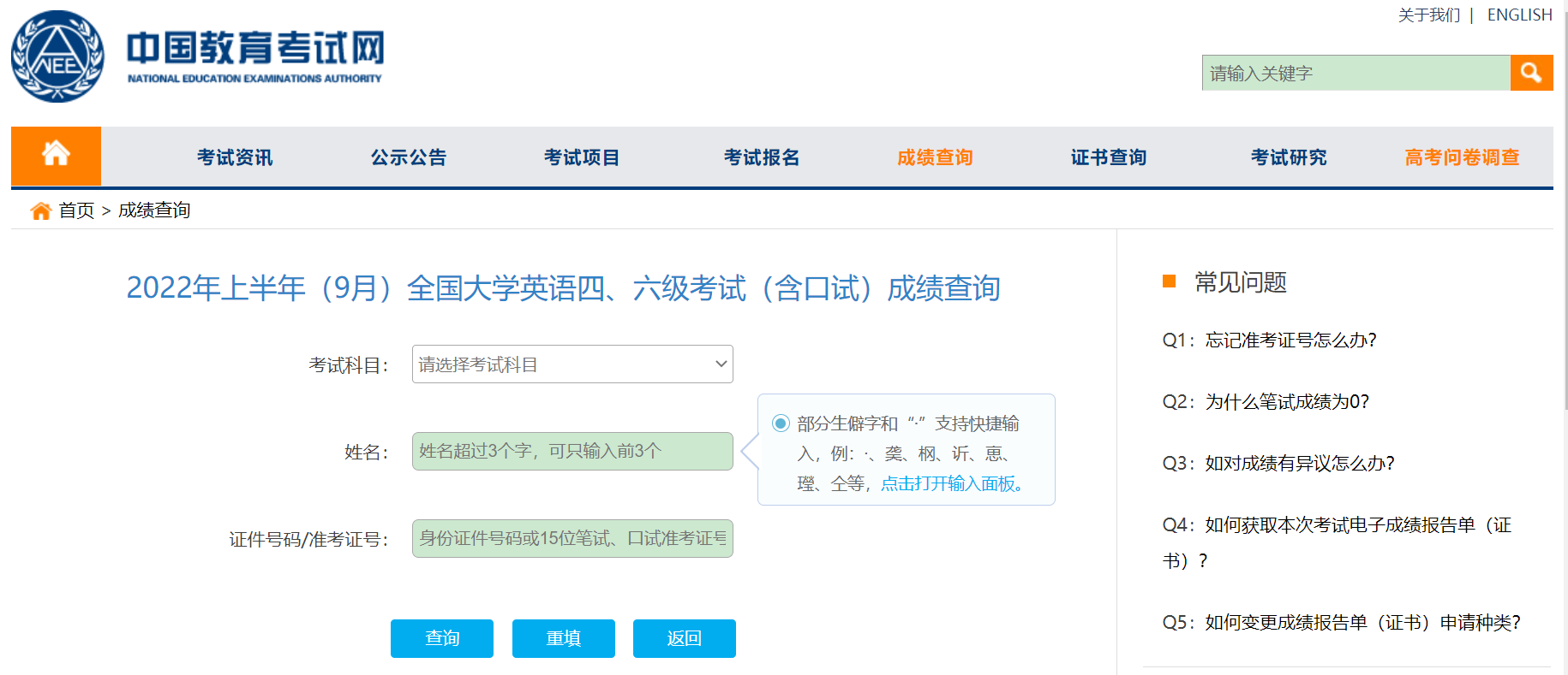 2022年9月全国大学英语四六级成绩查询官网入口