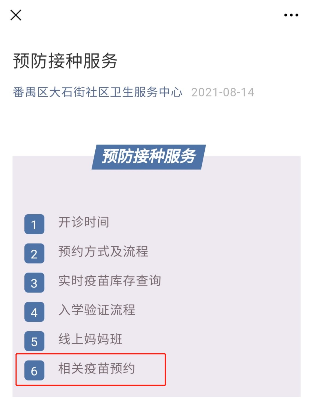 第三步:点击跳出来的新链接“6相关疫苗预约”进行信息登记;