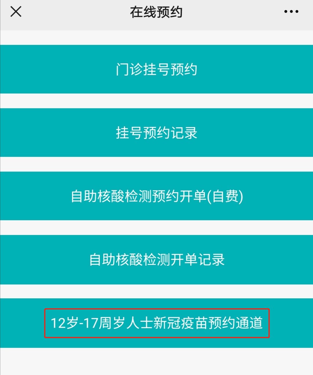 第三步:选择“新冠疫苗预约(仅12岁至17岁人士)”;