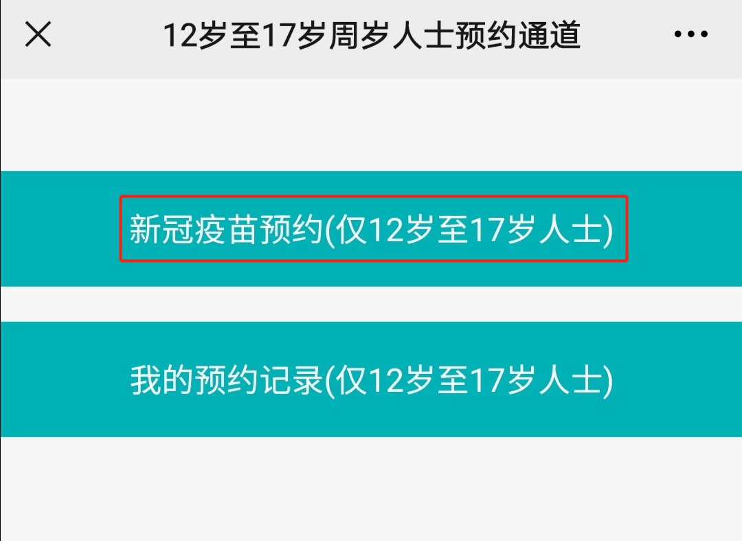 第二步:选择“12岁-17周岁人士新冠疫苗预约通道”;