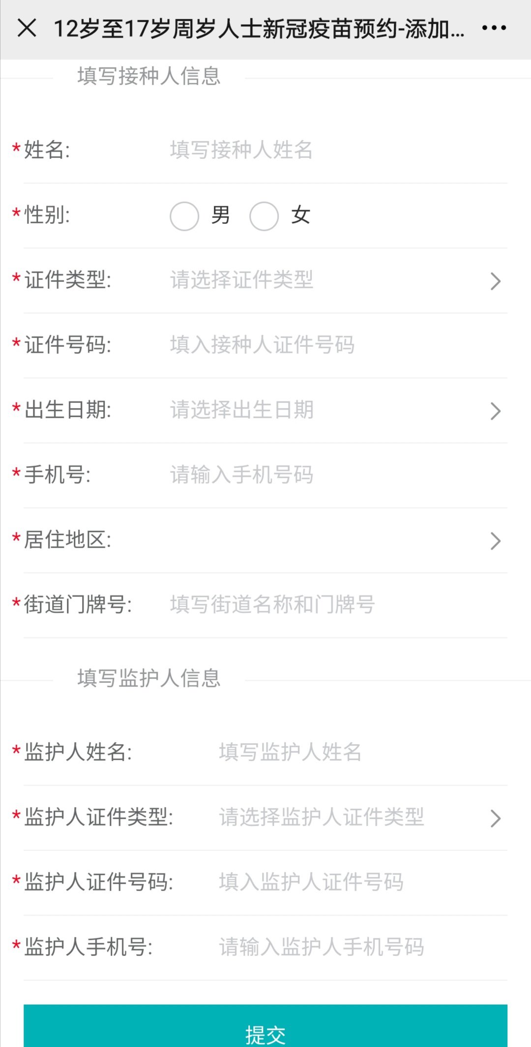 第五步:如实填写接种人信息,并提交。