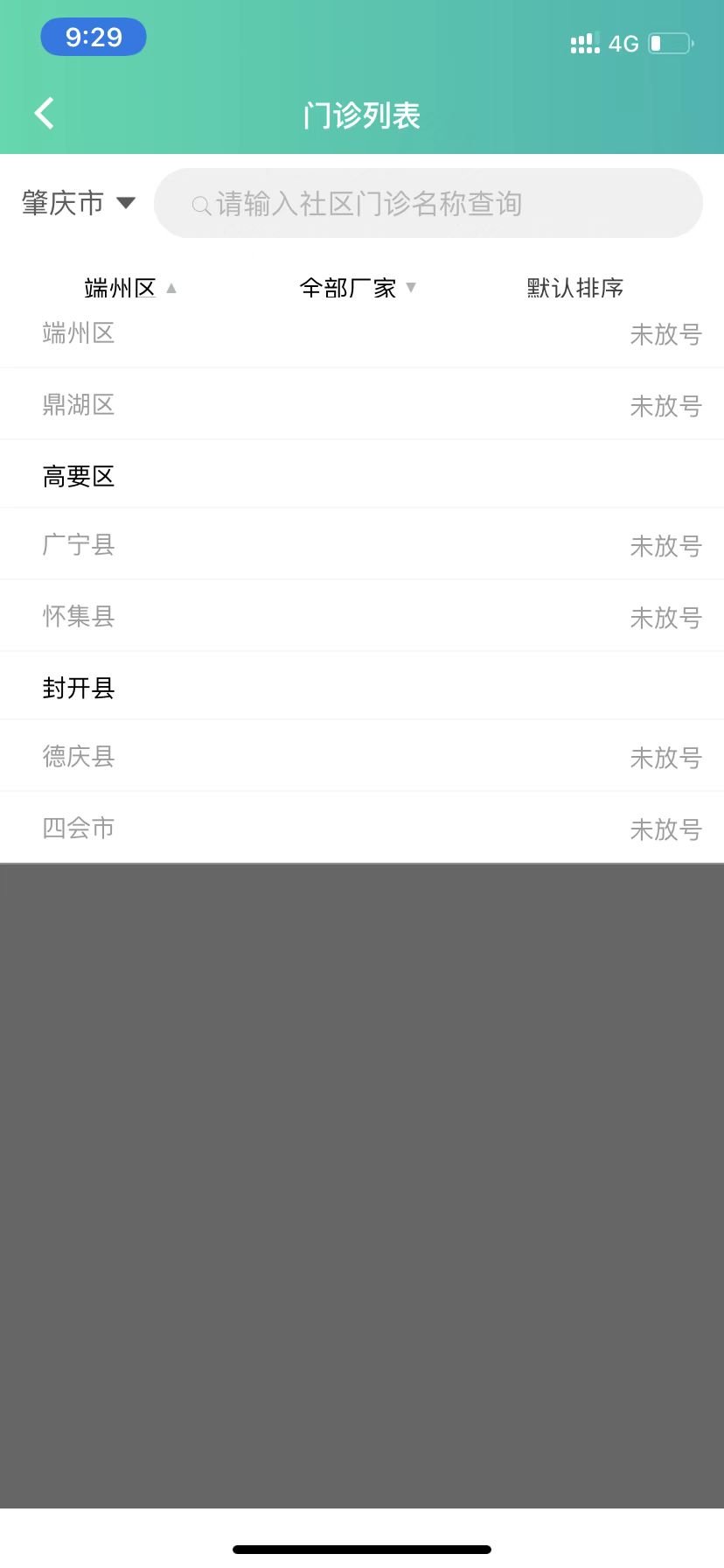 第六步:进入门诊列表,可查询放号与未放号的区县