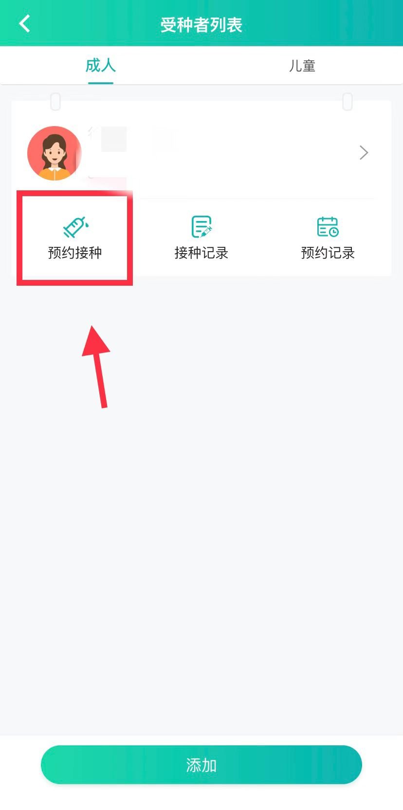 第二步:首页点击进入“成人接种”页面