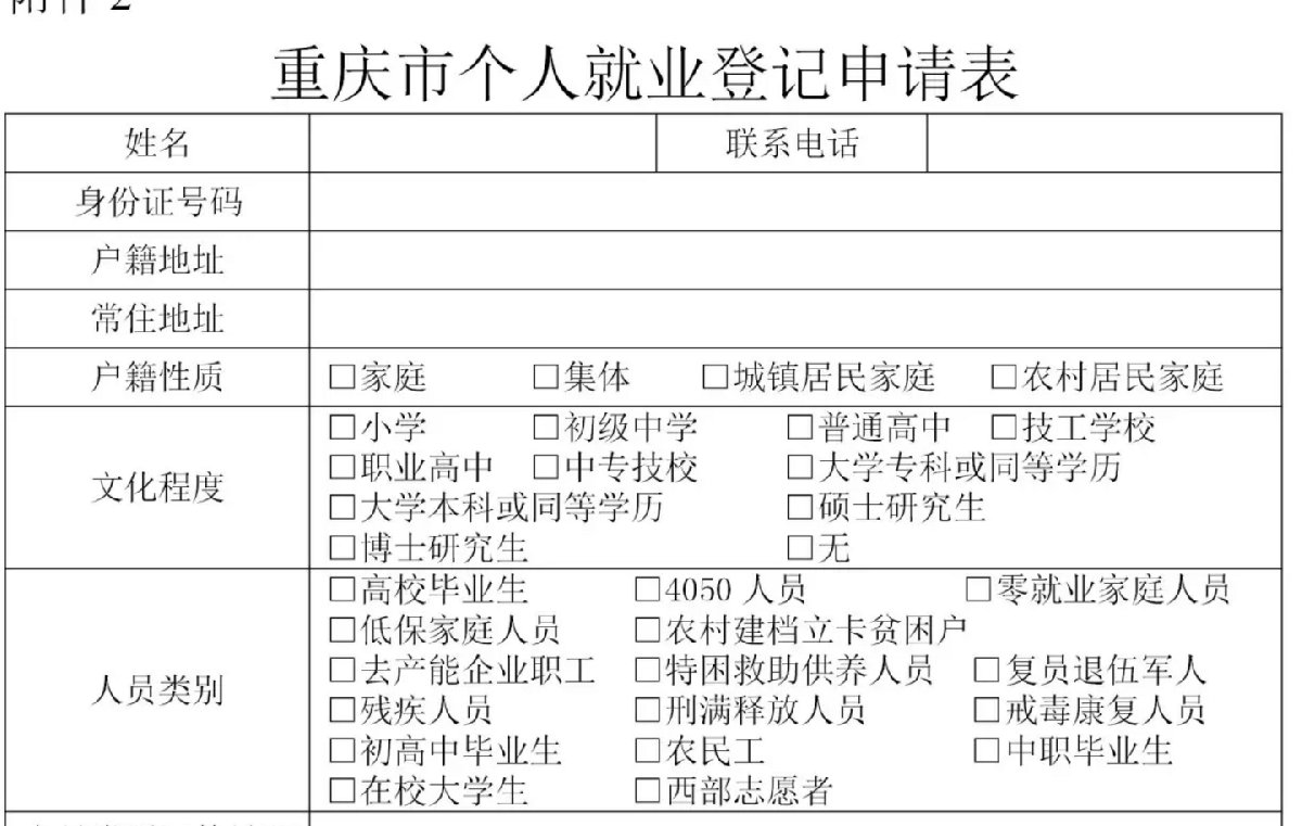 一、重庆就业登记申请表下载