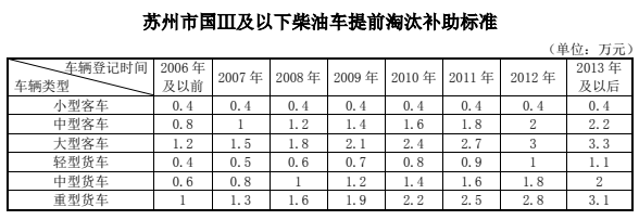 在苏州市注册登记的国家第三阶段机动车污染物排放标准(简称国Ⅲ)及以下的柴油车。