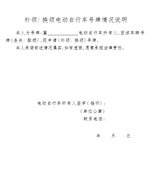 过渡期电动自行车临时号牌补换领: