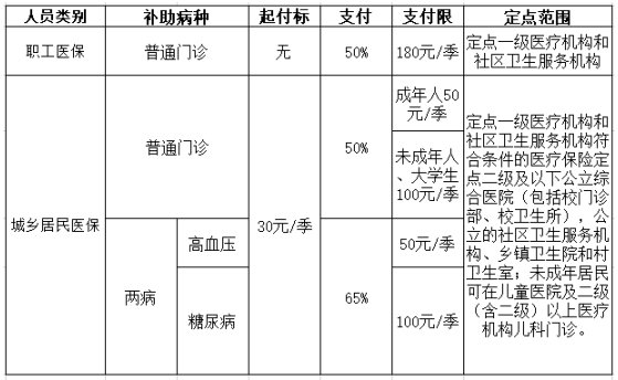 普通门诊是指门诊规定病种和门诊手术病种以外的门(急)诊就诊(不含体检)。城乡居民参保人享受普通门诊统筹和“两病”待遇。