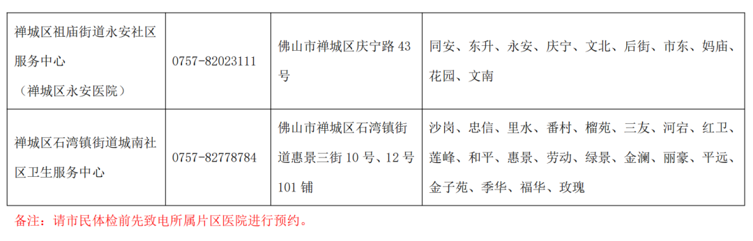 详情可咨询禅城区免费国家基本公共卫生服务项目承担机构: