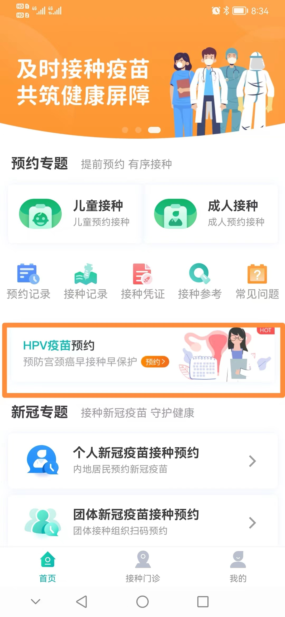 预约流程:关注医院公众号→智慧诊疗→在线挂号→公共卫生科→HPV疫苗预约(有苗时才显示号球,没有显示则表示没有苗预约)→选择适合的疫苗→预约成功。