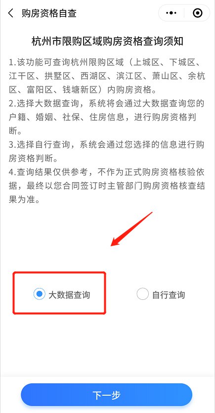 ①选择“大数据查询”,系统将会通过大数据查询您的户籍、婚姻、社保、住房信息,进行购房资格判断。