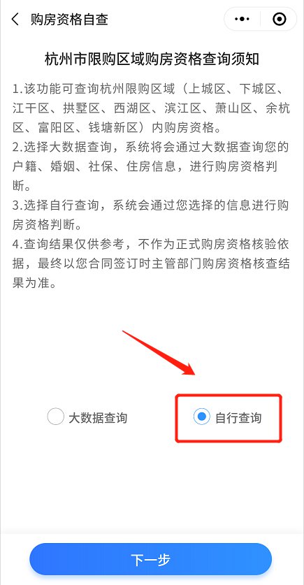 ②选择“自行查询”,系统会通过您选择的信息进行购房资格判断。