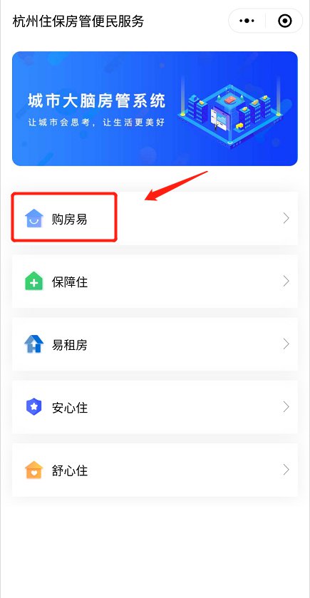 1、进入“杭州住保房管”小程序,选择“购房易”服务