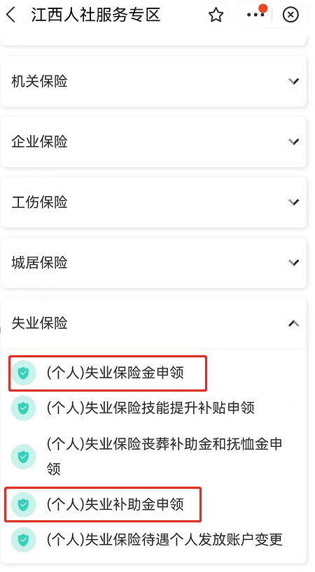 (4)赣服通:进入“人社服务”,找到“社会保障”,选择“失业保险”,选择“(个人)失业保险金申领”或“(个人)失业补助金申领”,阅读并填写相应信息进行申领。