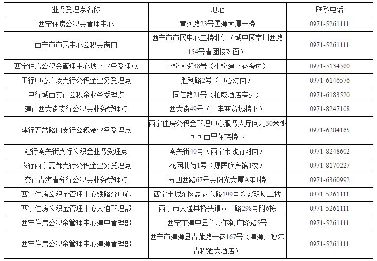 办理地点:西宁住房公积金管理中心归集业务受理点