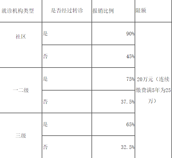 (2)一、二、三级定点医疗机构报销比例40%,未经定点社区医院转诊直接前往其他医院就诊的,报销比例减半。