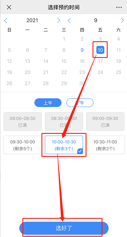点击选择需要预约接种的时间。确认后点击【选好了】;