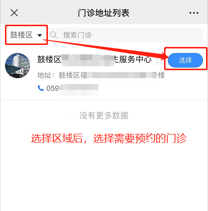 选择区域,选择需要预约接种的门诊,需注意成人疫苗分辖区管理,具体以门诊通知为准,否则视为无效预约;