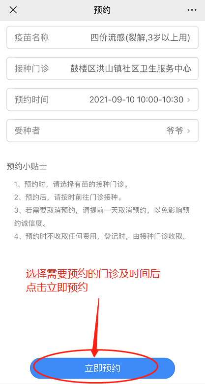 选择好预约的信息后,点击【立即预约】;