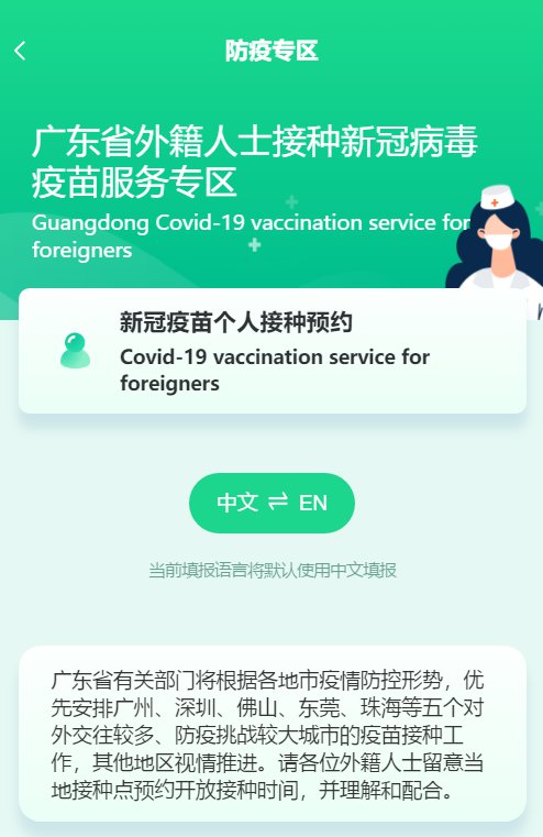 1、自愿接种的在粤外籍人士需通过粤健通微信服务平台进行在线预约登记(请留意各市接种点具体开放接种时间)。