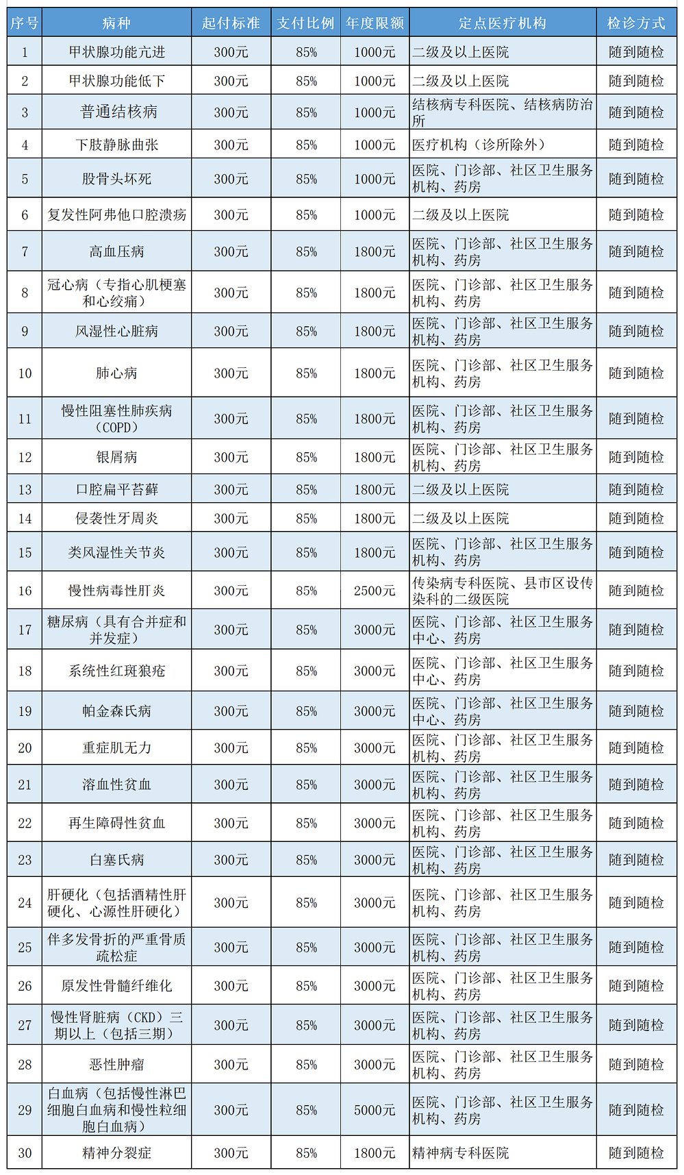 大连市职工基本医保“慢病”病种、支付限额及定点范围