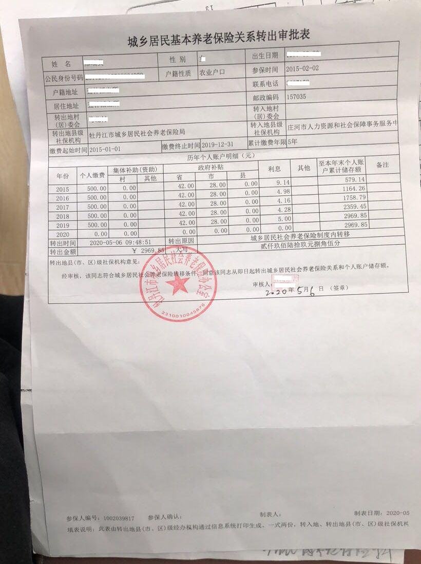大连城乡居民养老保险转移材料