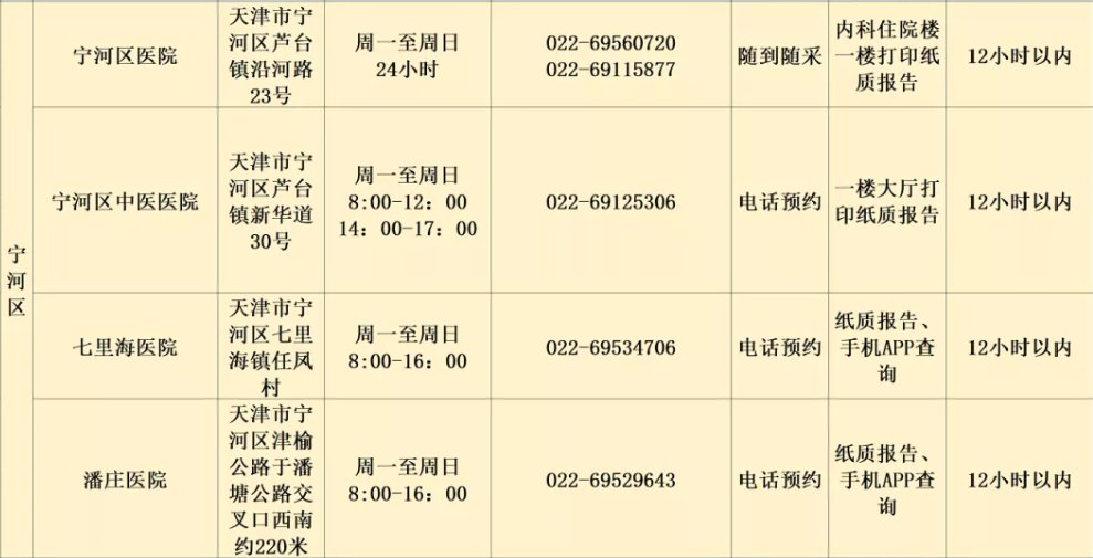 》》》宁河区春运期间核酸检测定点医院
