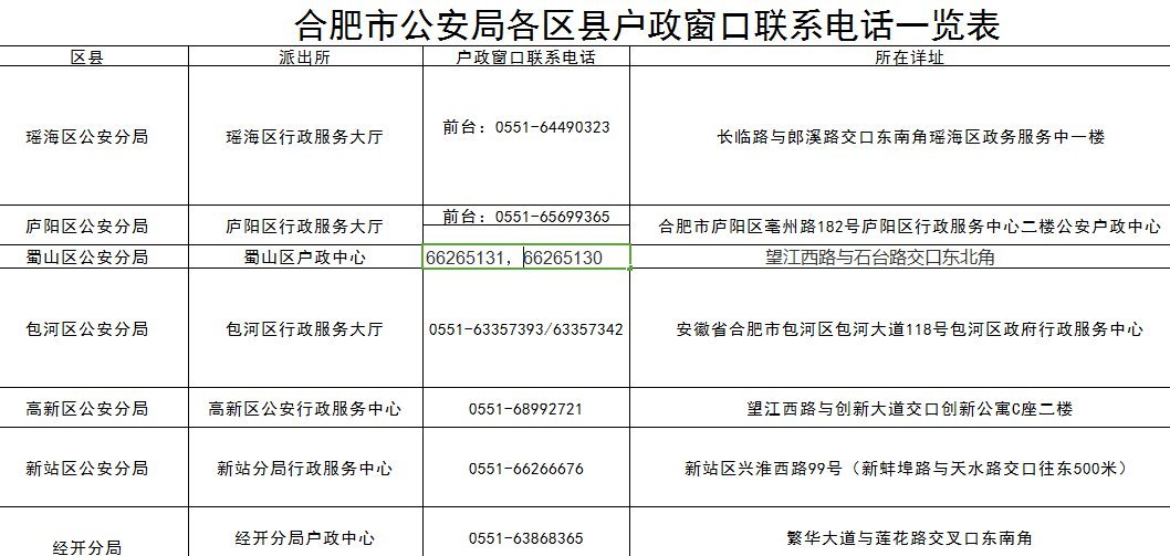 合肥各区户政中心地址:
