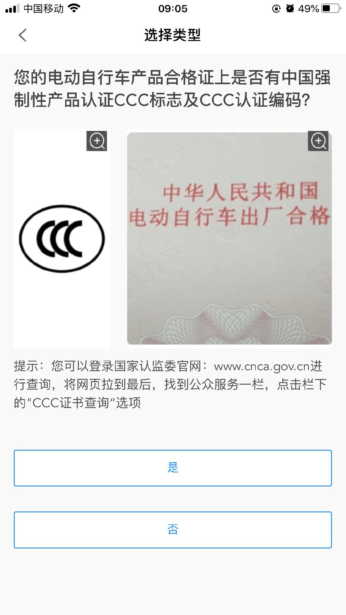 “是否有3C认证”“是否有电动自行车购买 发票”