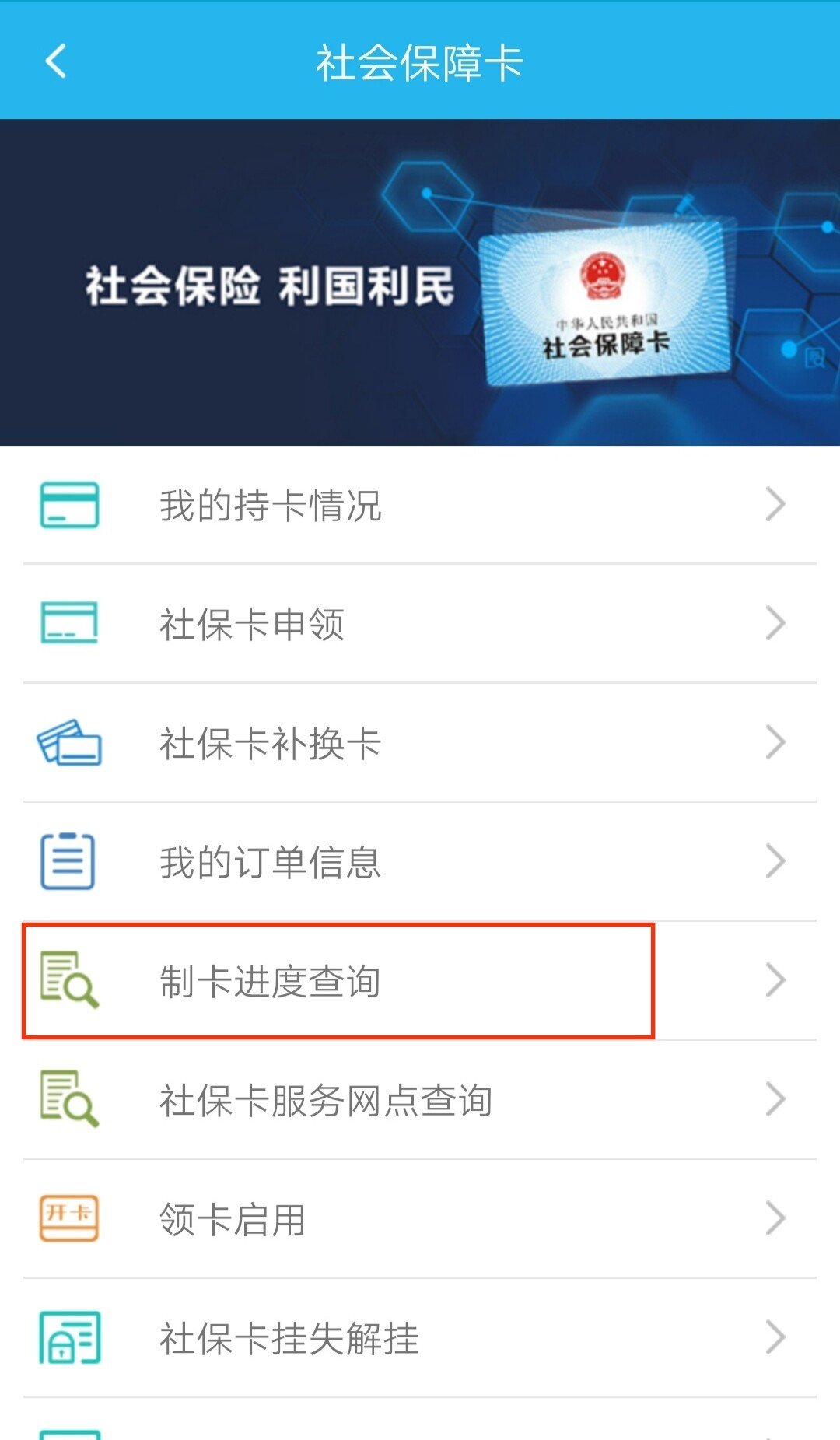 下载“广东人社”APP,点击【社会保障卡】功能模块,进入【制卡进度查询】栏目,在【社会保障卡制卡进度查询】页面点击下一步即可查询。