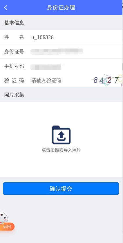 3.进行人脸验证后进入身份证办理页面,可在线进行人像采集。