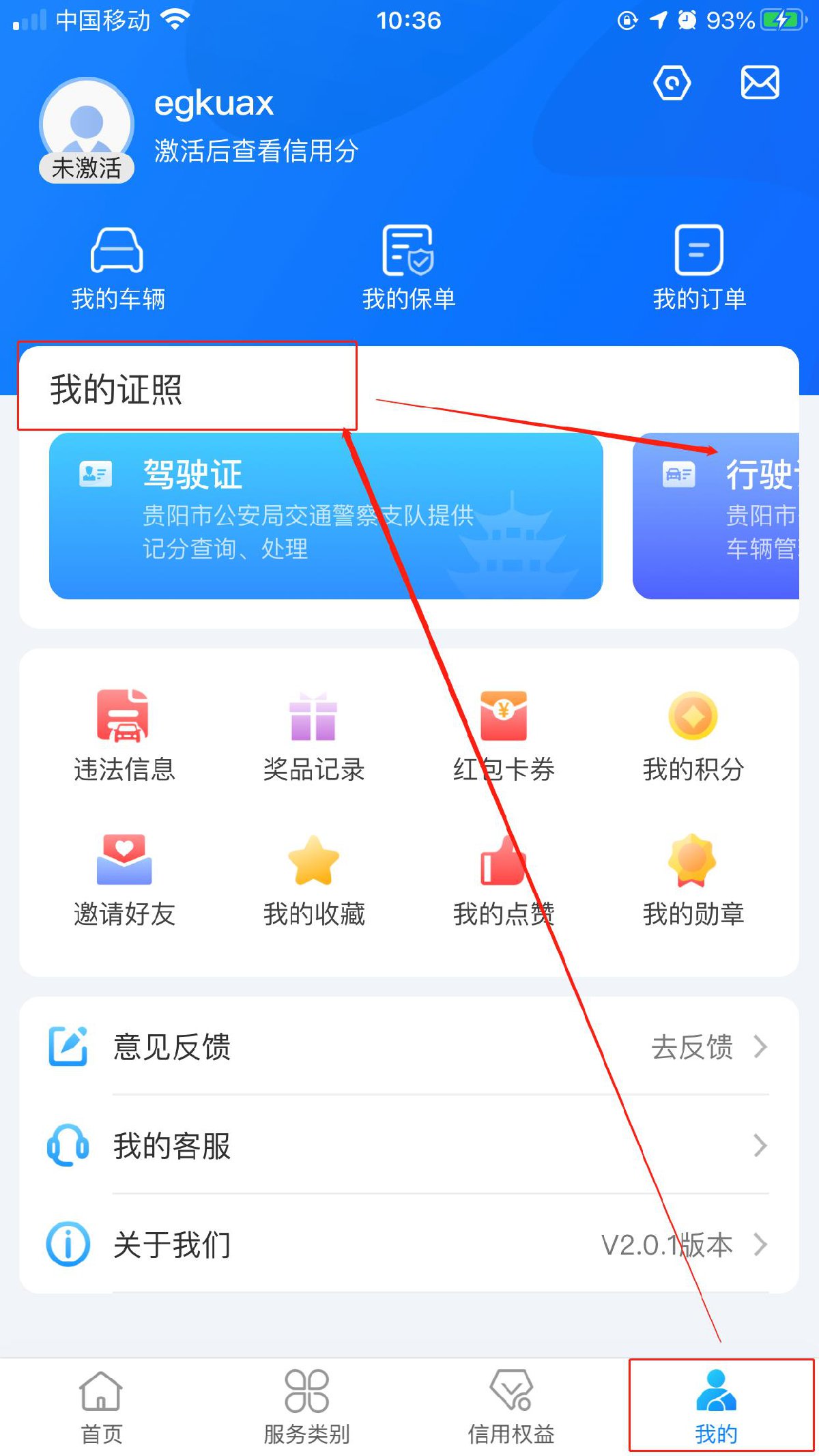 (方法四)在“我的”页面—我的证照—行驶证