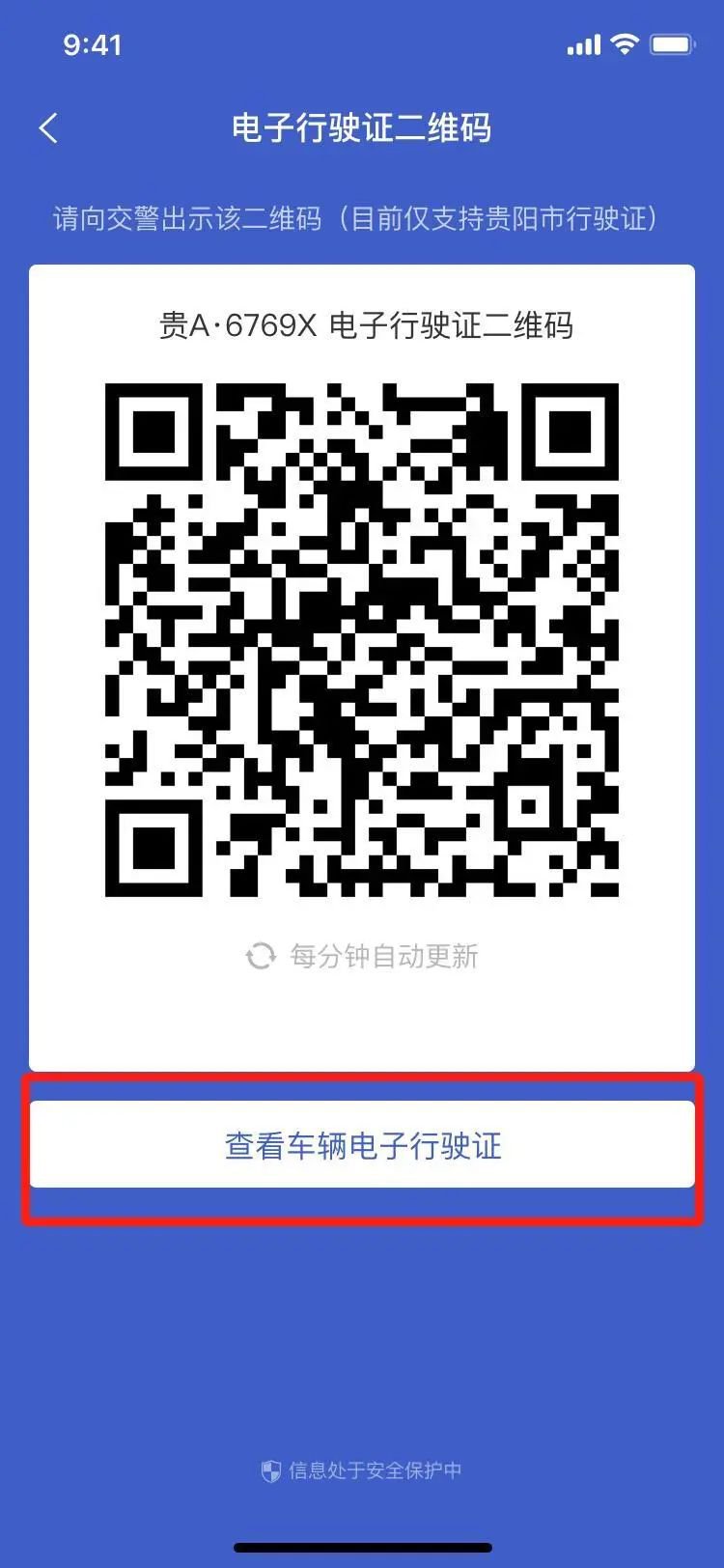 通过以上4种方式均可跳转至电子行驶证二维码界面,遇到交警直接出示二维码即可。