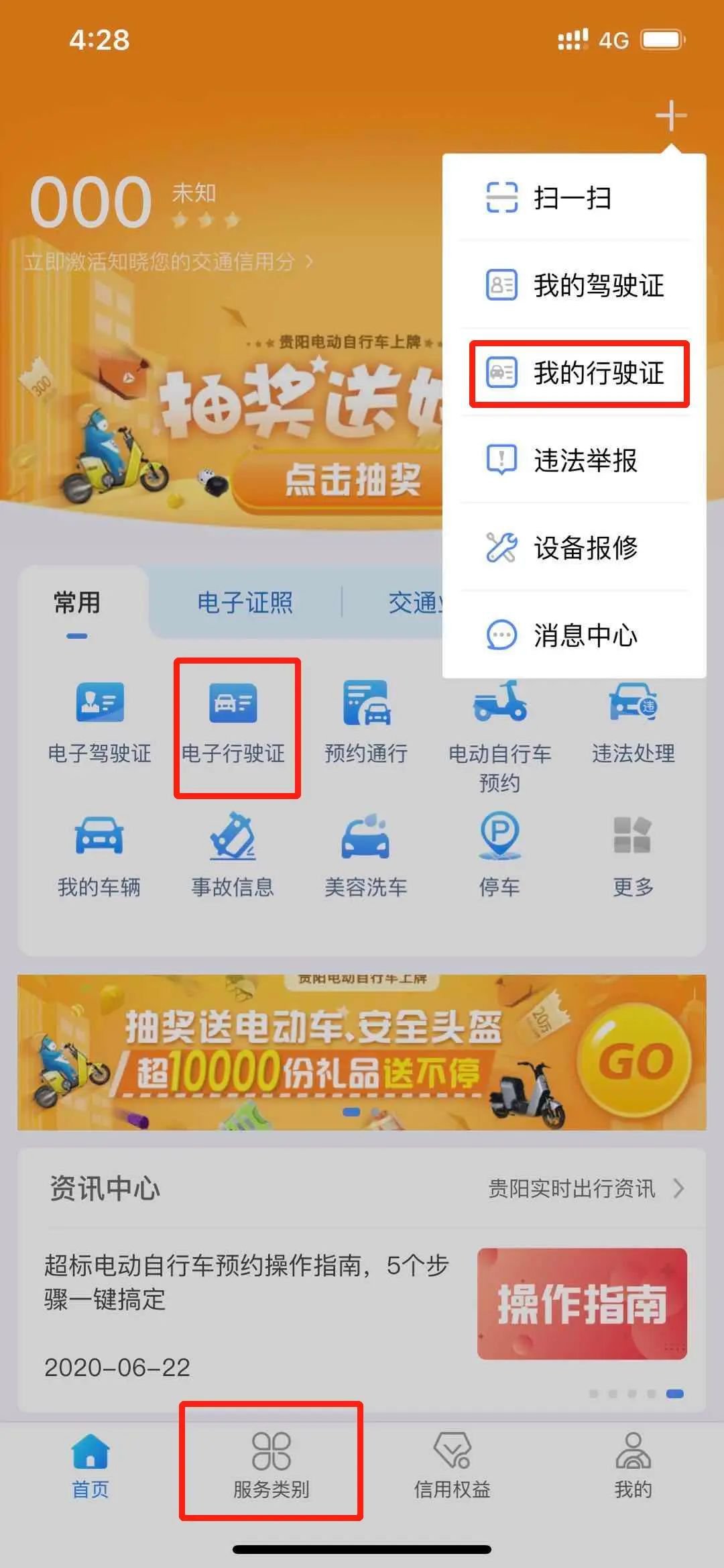 (方法一)点击APP首页的【电子行驶证】