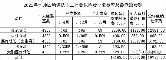 2022年七师团场连队职工社会保险费征缴费率及最低缴费额