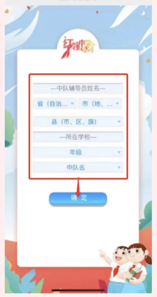2.进入签到页面,填写队员姓名,选择地区、学校、中队信息;