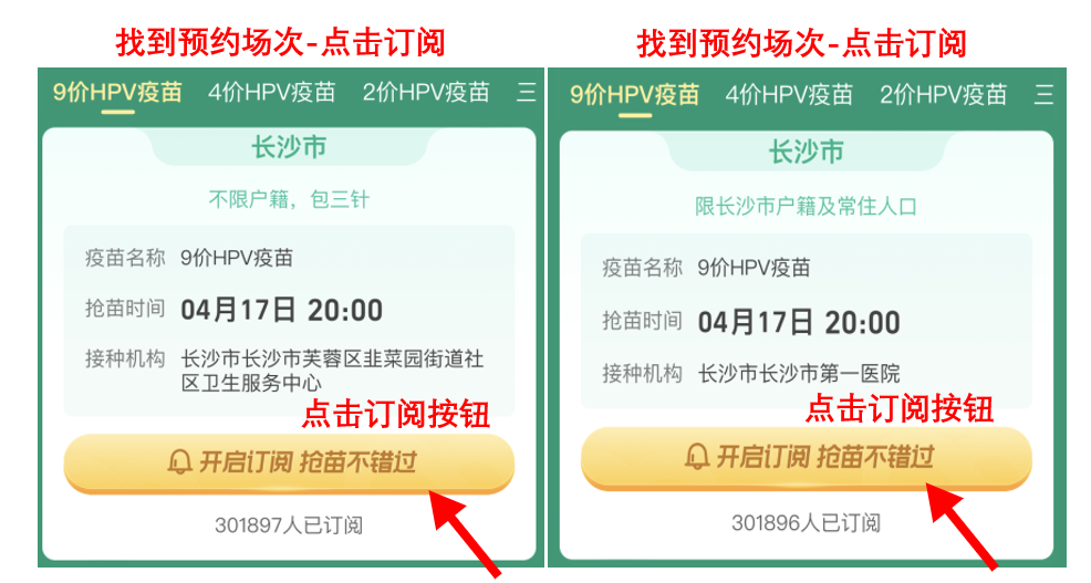 疫苗开放预约时,订阅按钮将变为预约入口,点击立即预约。