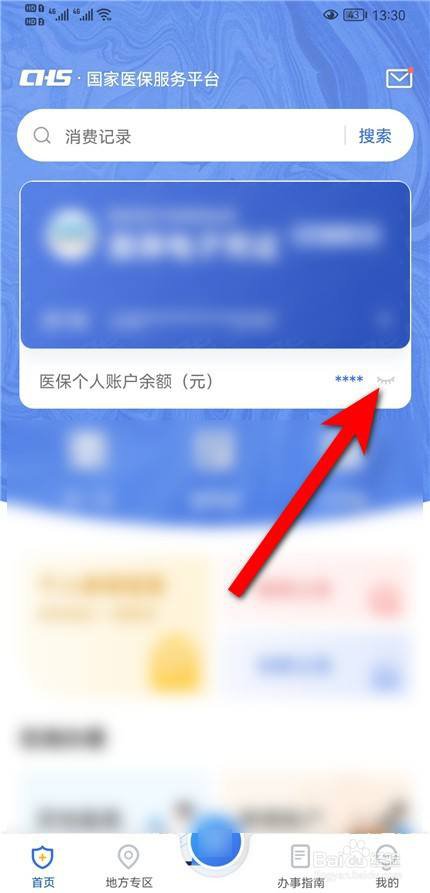 点击医保个人账户余额后面的小眼睛图标。