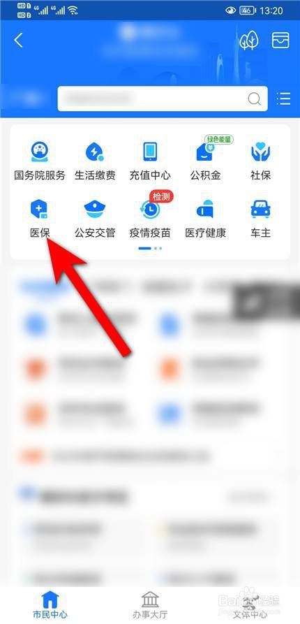 在市民中心,点击医保。