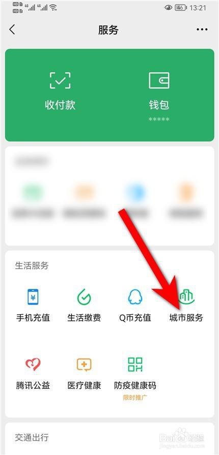 打开APP我的,点击服务,再点击城市服务。
