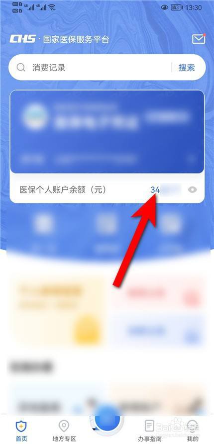 点击医保个账,进入医保余额查询页面,就可以查看余额了。