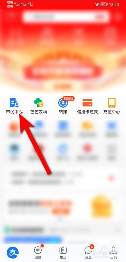 进入app,点击市民中心。